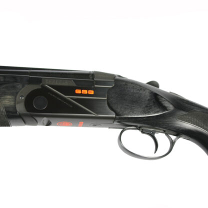 This is the brand new Beretta 688 Black Performance Sporter with 30″ m/c barrels. The action is black with attractive orange logo’s and detailing. For the first time Beretta have put a laminate stock and forend on an over & under. The stock has a comfortable palm swell and is fitted with the Beretta B-Fast adjustable comb to allow the user to fine tune the fit. The black action with orange detailing and dark grey/black laminate stock looks good in the flesh – in fact the whole package is very striking making it stand out from the crowd. The action is as wide as the 694 putting weight between the hands, the barrels are over bored (18.6) to allow more pressure forwards effectively reducing recoil and improving the shot pattern. It is a gun that would be a great choice for clay shooting in particular sporting clays.