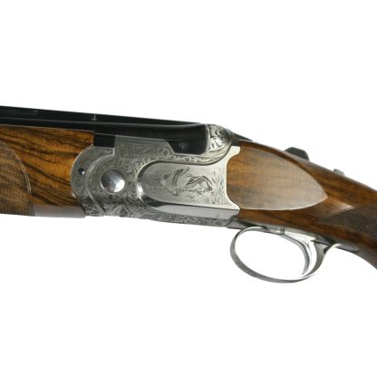 This is a tidy second hand Beretta DT11L Gamescene engraved Sporter with 32″ multi choke barrels – a gun designed for out and out clay shooting. It is a very good looking gun indeed with lovely game-scene and scroll engraving and nicely figured and proportioned woodwork. . The overall weight combined with the Steelium Pro (extra long tapering forcing cones) barrel technology in these guns make them very smooth handling and shooting guns.