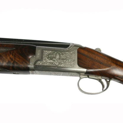 This is a second hand Browning B325 Grade 3 12ga with 28″ sporting multi choke barrels – an attractive gun to look at with game scene and scroll engraving and nicely figured grade 3 woodwork which has been fitted with a soft rubber recoil pad. It is a gun that would make a suitable choice for either clay shooting or driven game shooting being well balanced with lively handling characteristics.